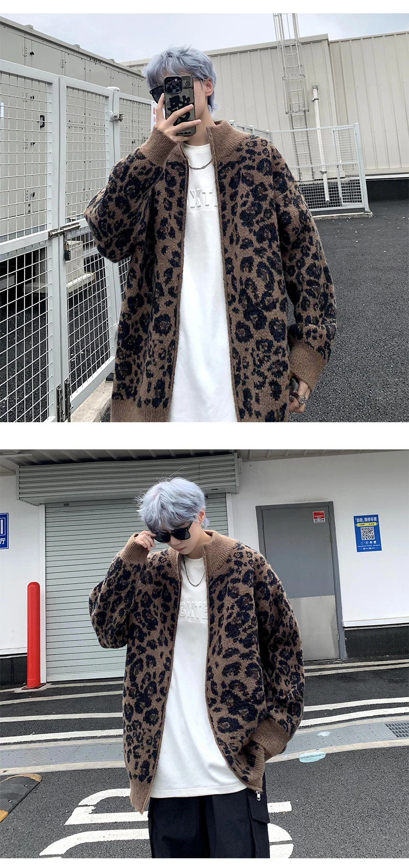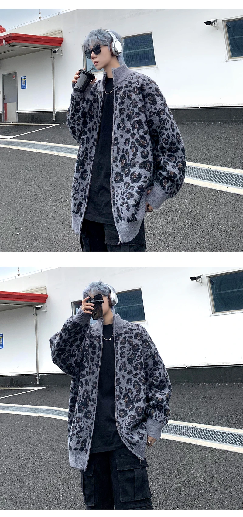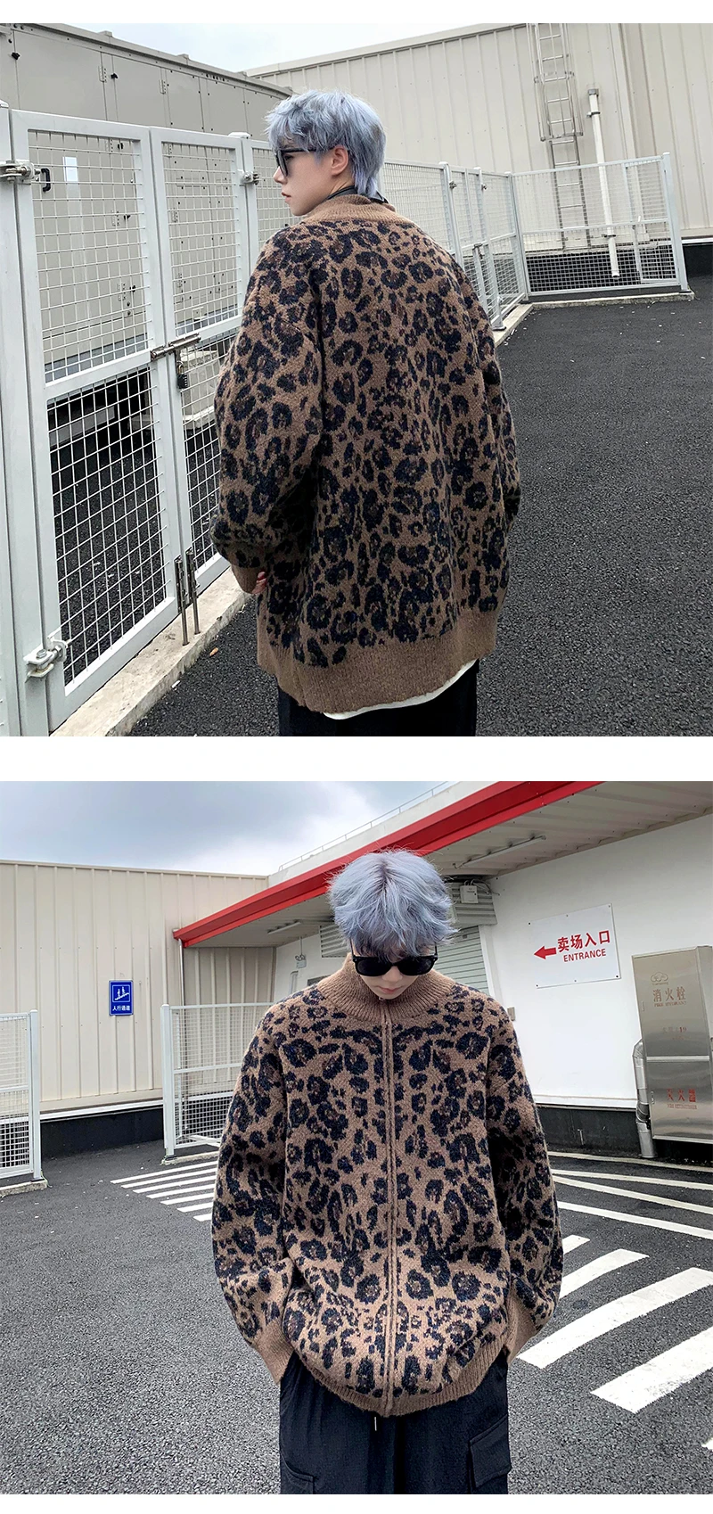 Retro Leopard Knit Cardigan Sweater Men's Jacket Korean Streetwear Popular Zipper Long Sleeve Knitwear Unisex Outwear – GURUNVANIS
