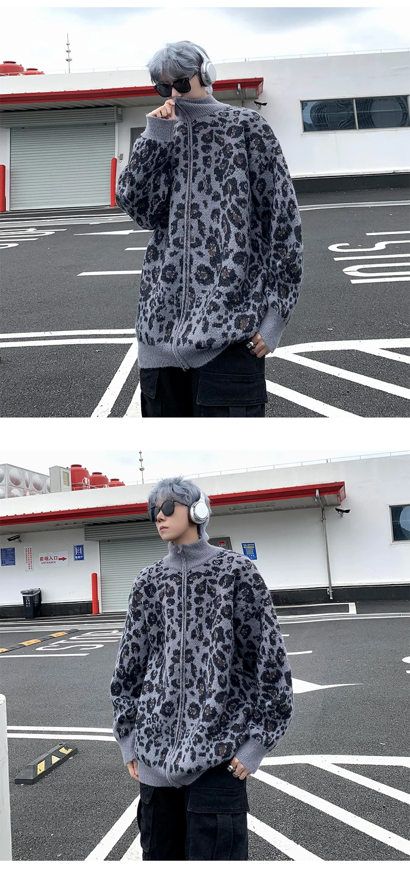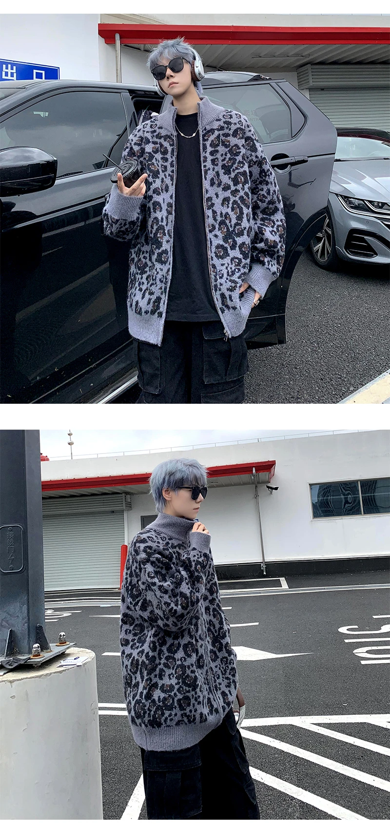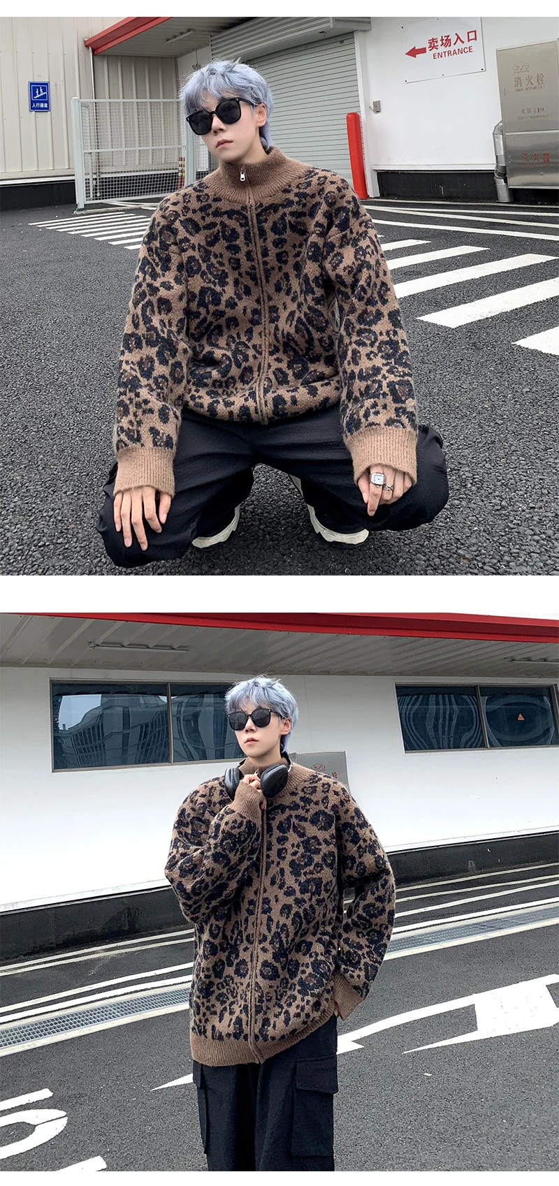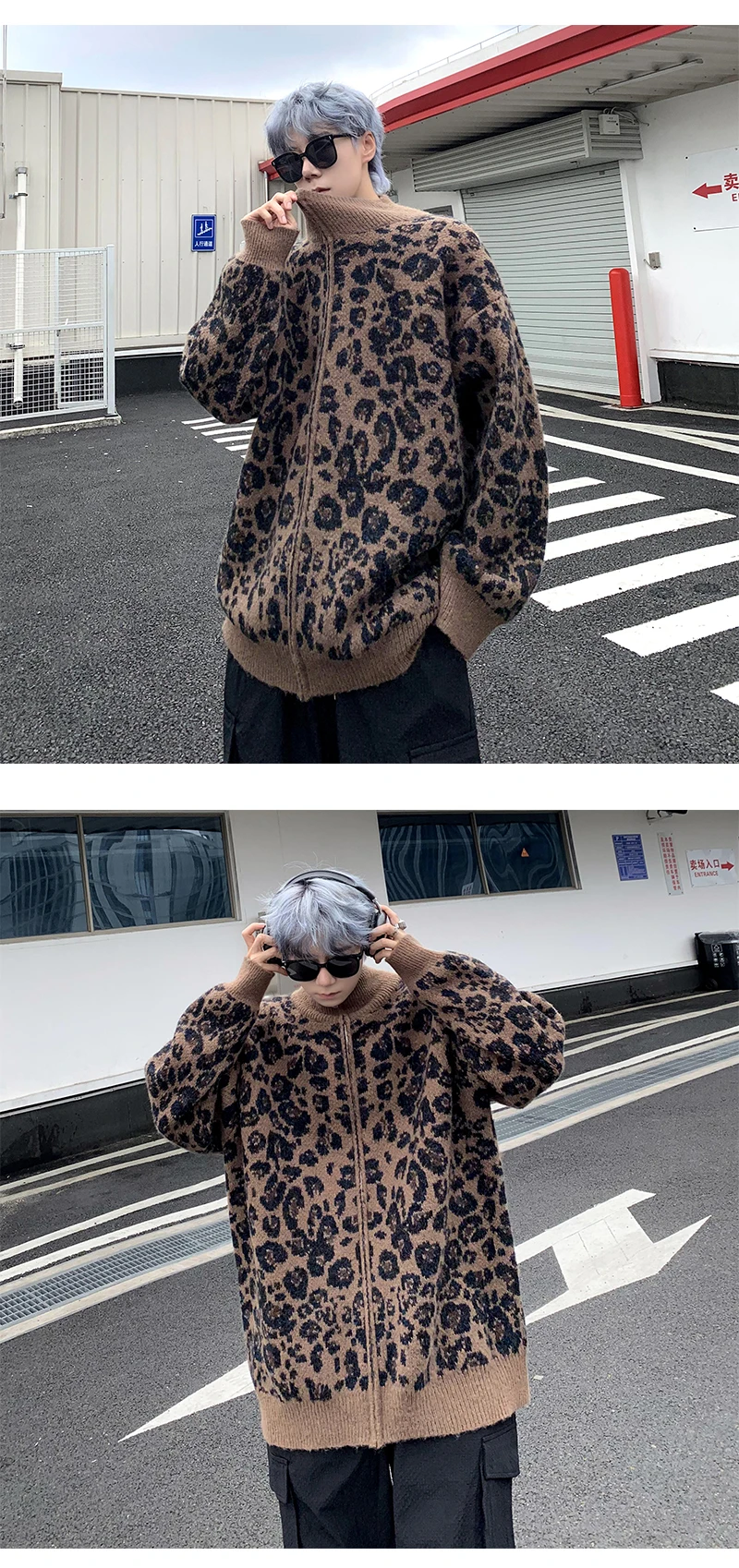 Retro Leopard Knit Cardigan Sweater Men's Jacket Korean Streetwear Popular Zipper Long Sleeve Knitwear Unisex Outwear – GURUNVANIS