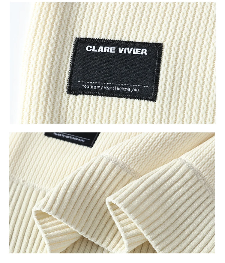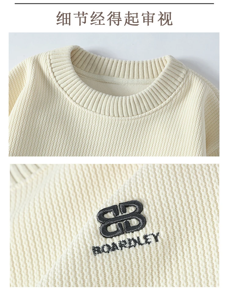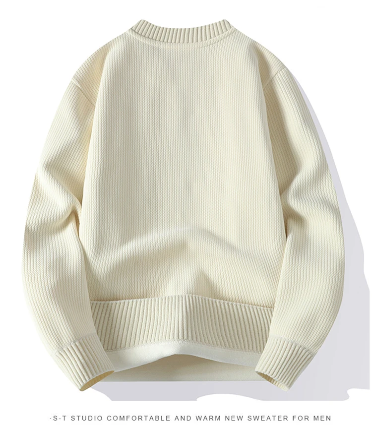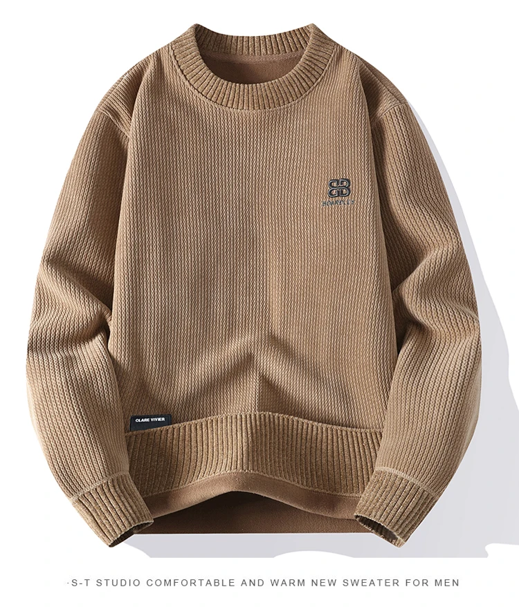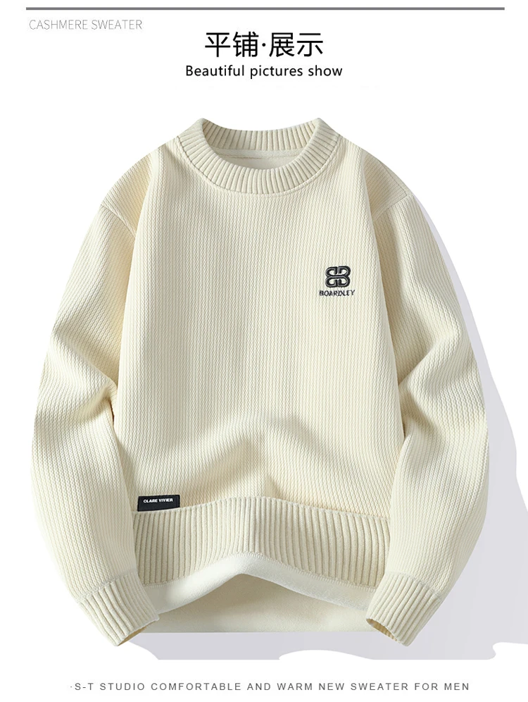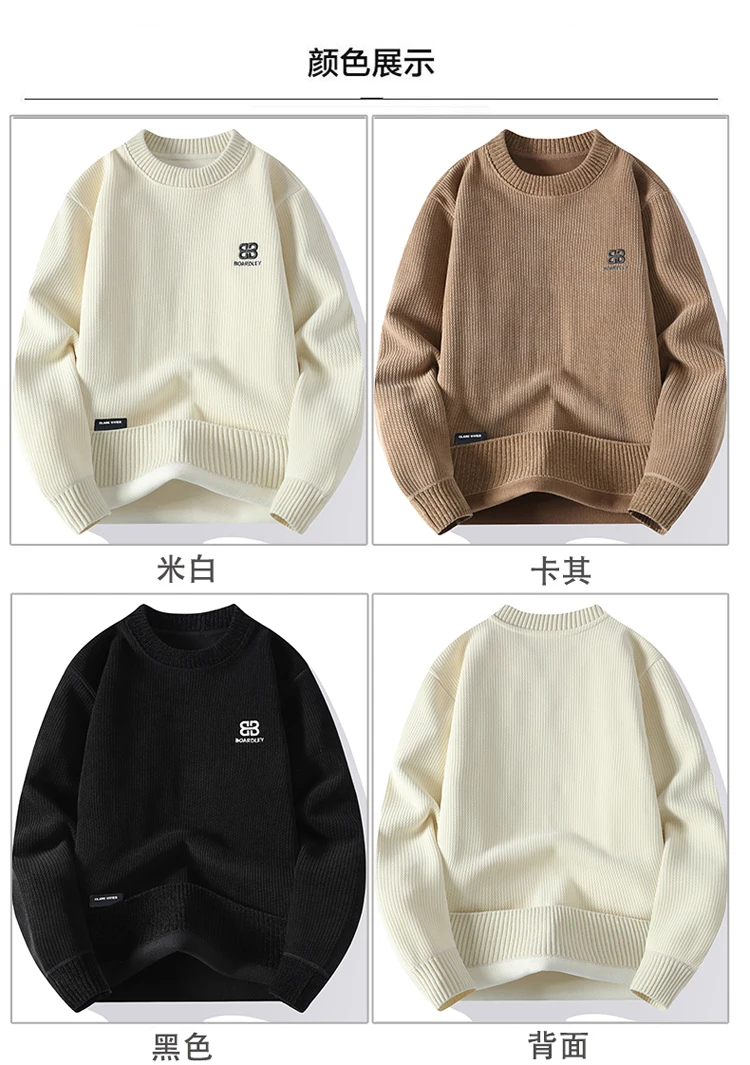 Embroidered Sweater Round Neck Thick Warm Knit Pullover Autumn Winter Plus Velvet Solid Color Casual Sweater.